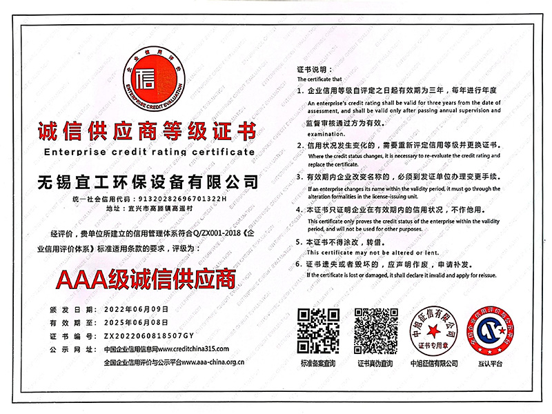 • 環保設備制造維修企業服務能力等級證書